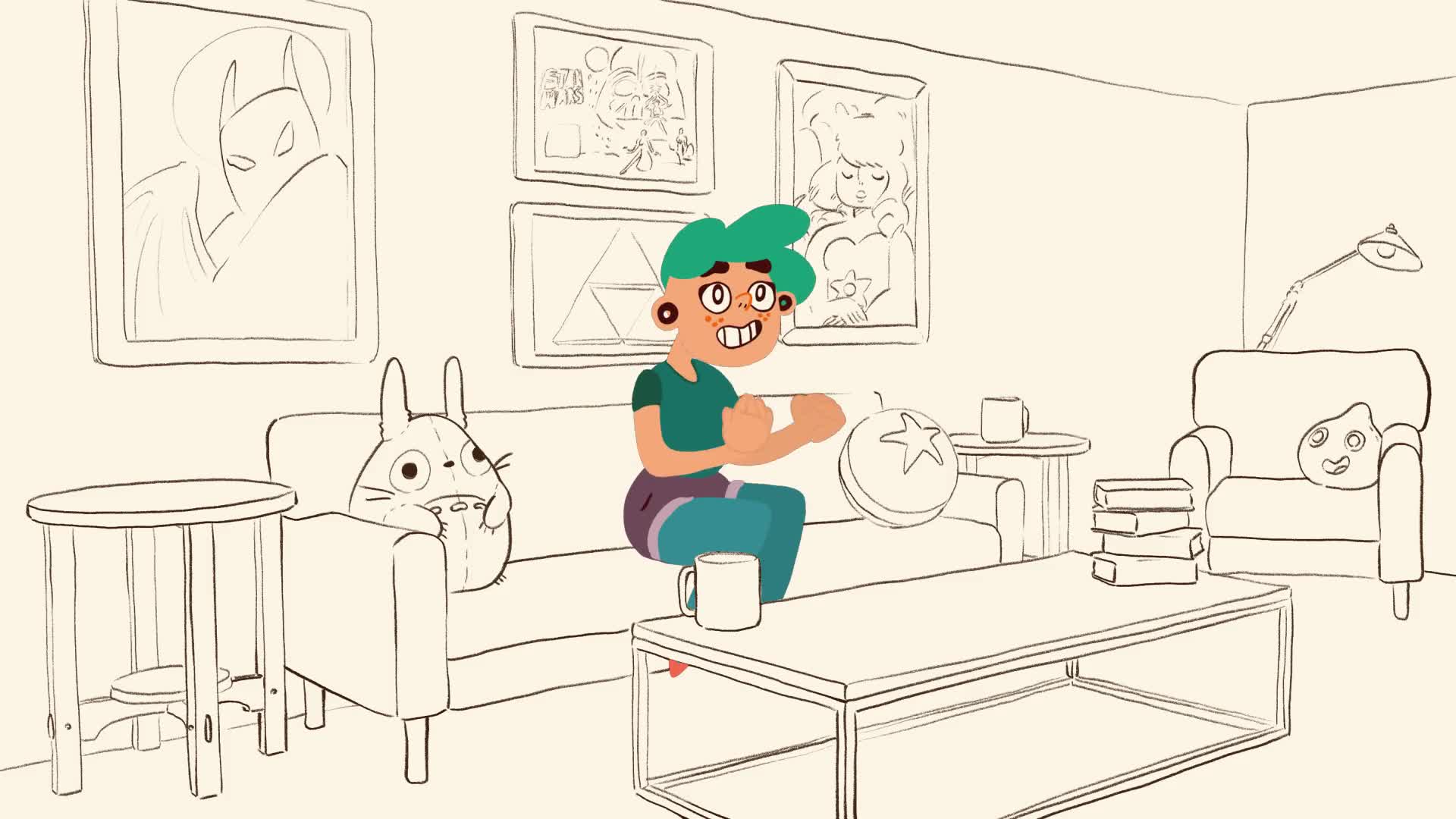 2D animation advertising clip drawn in bright colors. |